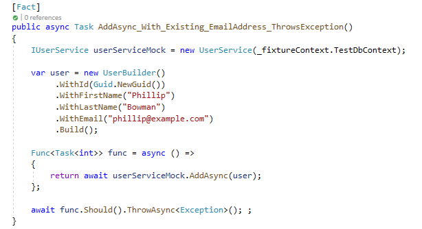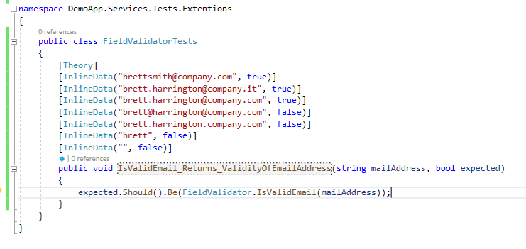 Note: Readup more on xUnit and understand Fact, InlineData, Theory concepts and apply it depending on your testing scenario.